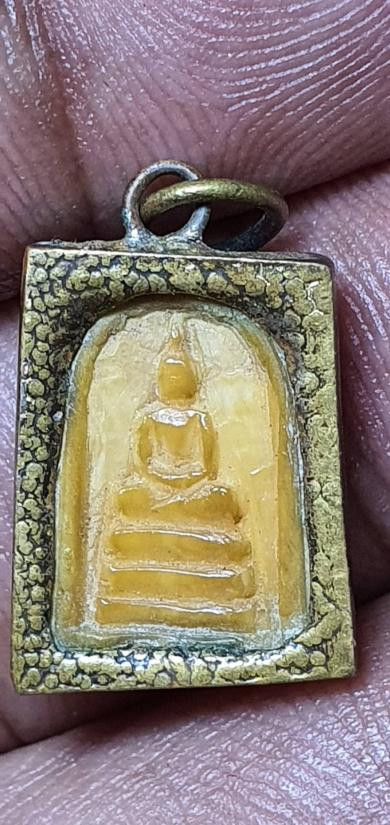 ตลับสีผึ้งทองเหลืองเก่า ด้านในพระพุทธงาแกะเก่าไม่ทราบที่ |