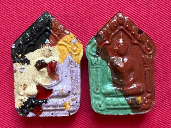 วัดใจไปเลยพระผงหลวงพ่อปลดหนี้ รุ่นรวยปลดหนี้ วัดพระธาตุวาโย จ.ฉะเชิงเทรา เนื้อผงสีดำ ฝังตะกรุดทองแดง 2 ดอก จำนวน 2 องค์ |