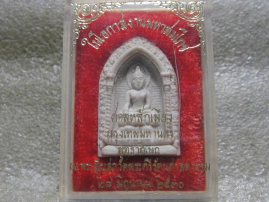 วัดใจเคาะเดียว.......100.......พระผงไพรีพินาศ สมเด็จพระญาณสังวร วัดบวรนิเวศวิหาร สมโภชศาลหลักเมือง กทม. พ.ศ.2529 สวย คากล่องเดิม |