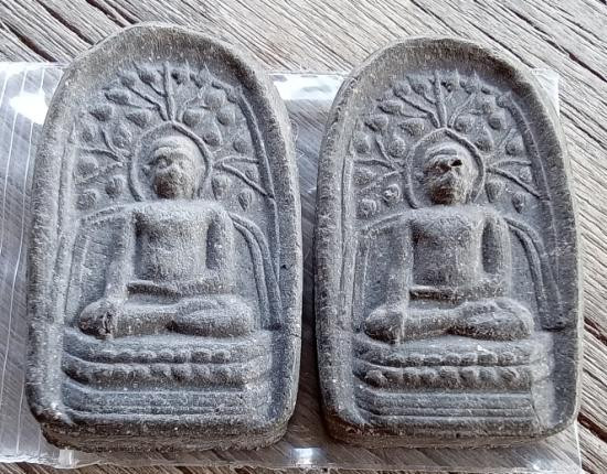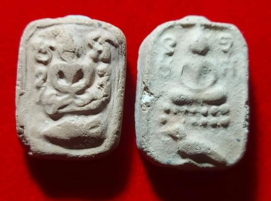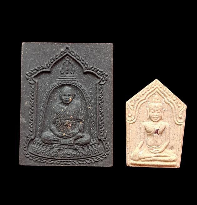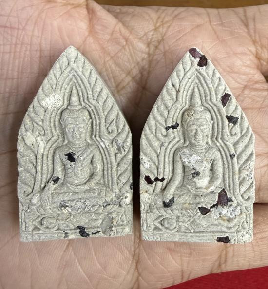 พระผงใบลานซุ้มระฆัง และ พระผงขุนแผนเล็กฝังพลอยแดง ปี 41 (เคาะเดียว) |