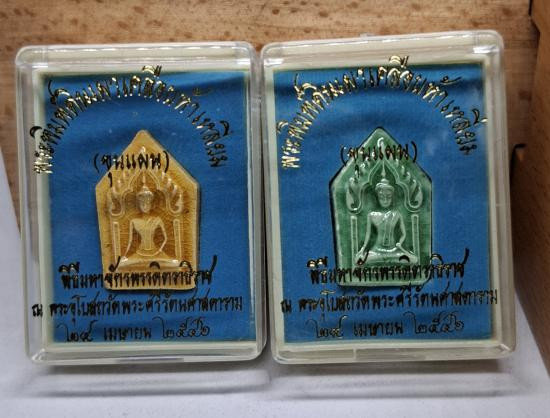 พระแก้วมรกตเนื้อผงรุ่นรุ่นแรก หลวงปู่บัว ถามโก วัดศรีบูรพาราม จังหวัดตราด สวยๆกล่องเดิมยังไม่แกะซีน วัดใจ 100 แดงครับ |