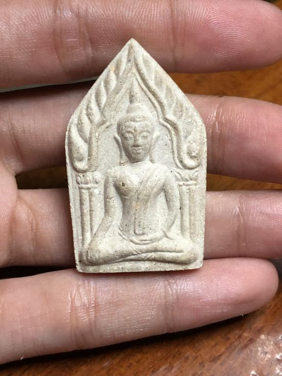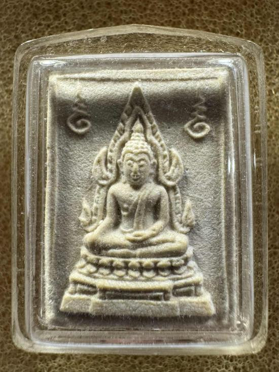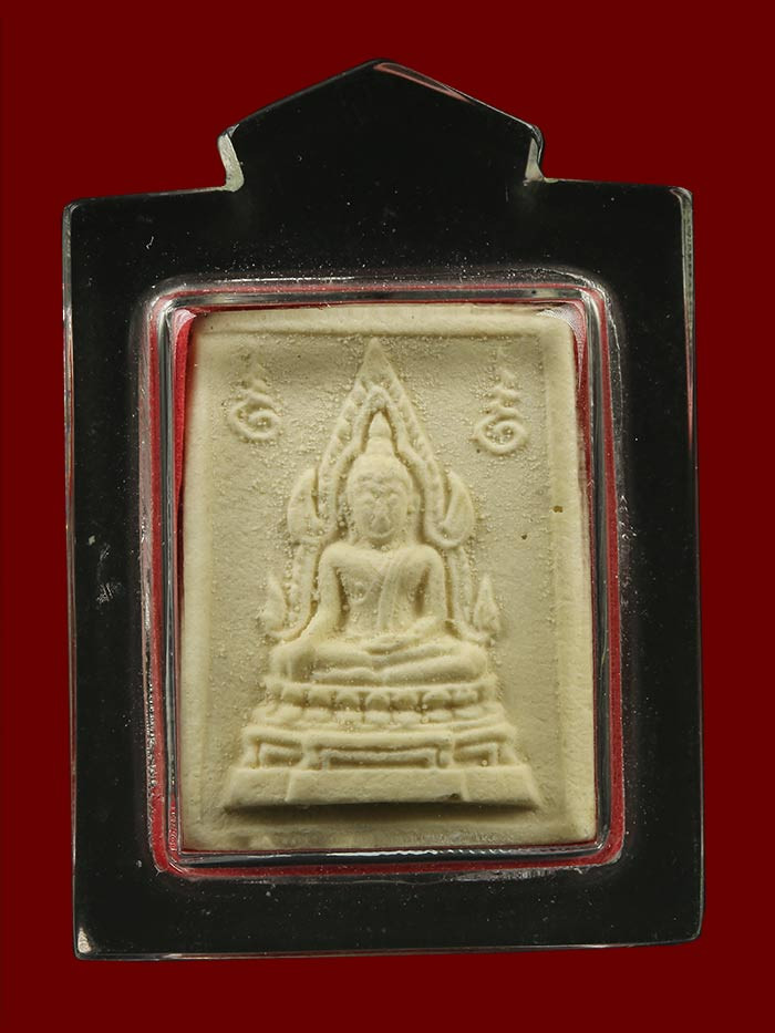 A5496.พระเนื้อผง หลวงพ่อวัดบ้านแหลม หลัง ช เลี่ยมพลาสติกเก่า เคาะเดียวเเดง |