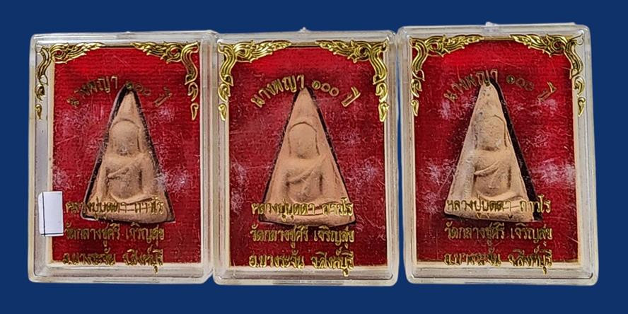 (3 องค์ ) พระ นางพญา พิมพ์ใหญ่ หลวงปู่บุดดา ถาวโร วัดกลางชูศรีฯ จ.สิงห์บุรี - สภาพสวยเดิมๆ พร้อมกล่องครับ |