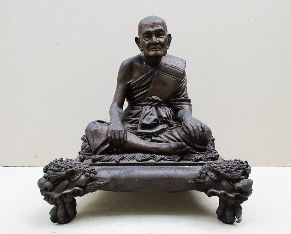 พระบูชารูปเหมือนนั่งโต๊ะหัวสิงห์ หลวงปู่คร่ำ ยโสธโร วัดวังหว้า จ.ระยอง รุ่น สรงน้ำเสาร์ห้า พ. ศ.2537 หน้าตัก 9 นิ้ว ตอกโค๊ต 3 โค๊ต ตอกเลข เนื้อทองเหลือง ผ ิวแห้งหิ้ง !! |