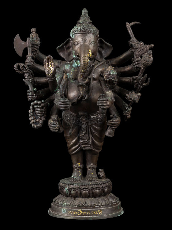 พระพิฆเนศวร์ ขนาดบูชา สูง 9นิ้ว กว้าง ฐานสุด 7 นิ้ว เนื้อโล หะ |