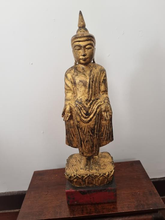 พระลีลากำแพงศอกหลวงพ่อขอมวัดไผ่โรงวัวปี 2505 เนื้อตะกั่ว ความกว้างจากฐานซ้ายถึงฐานขวา8นิ้วจากฐานถึงปลายชุ้มสูง16นิ้ว รับประกันตามกฏของเวบครับ |