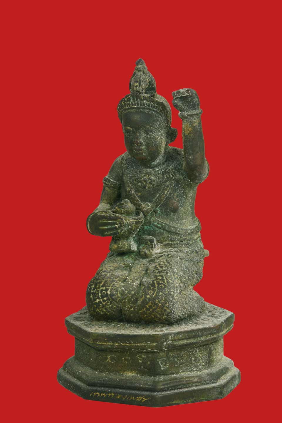 (เคาะเดียววัดใจ)กุมารทองหลวงปู่หงษ์ วัดเพชรบุรี รุ่นนั่งรวย เนื้อสำริดสนิมเขียว ปี 2546 จ.สุรินทร์ (ขนาดสูง 5 นิ้ว) รับประกันเเท้100% |