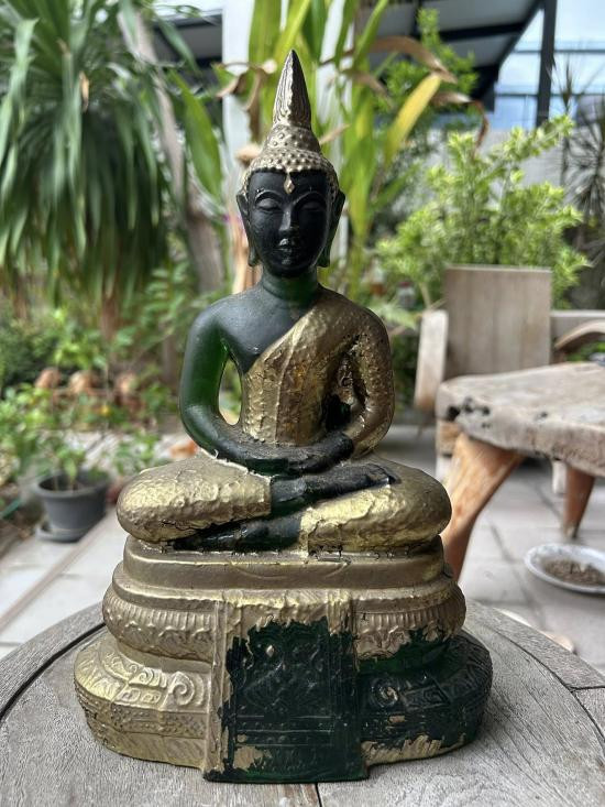 พระบูชาหลวงพ่อโต วัดโสภณาราม บ้านขอม สมุทรสาคร ปี 2535 รุ่นแรก ขนาดหน้าตัก 5 นิ้ว ทองผสม มีคราบยาขัดเดิมตามซอกองค์พระ สภาพสวยมากครับ |