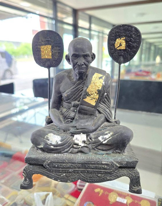 "วัดใจ" พระบูชาหลวงพ่อเก๋ วัดแม่น้ำ รุ่นแรก หน้าตัก 5 นิ้ว ตอกโค๊ต ยันต์ ใต้ฐานอุดปูนปั๊มลายเซ็น |