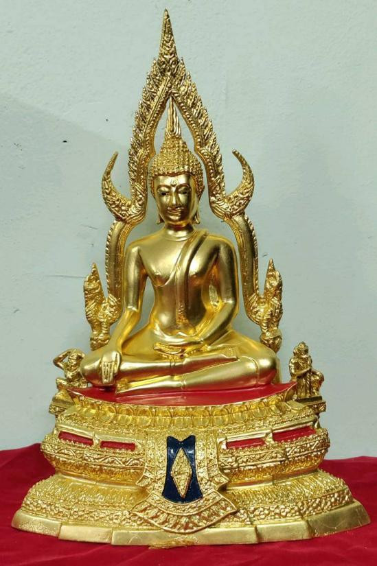 พระบูชาพระพุทธชินราช หน้าตัก 4.5 นิ้ว ตราอกเลา หลังพานพระศรี ปิดทองเดิมๆ เบาๆครับ |