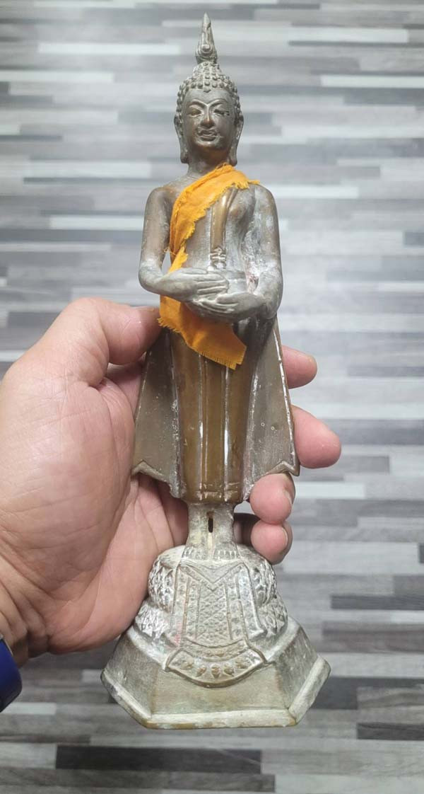 เคาะเดียวแดง พระพุทธรูป ( ปางอุ้มบาตร ) ไม่รู้ที่ เนื้อทองเหลือง สูง 10 นิ้ว |