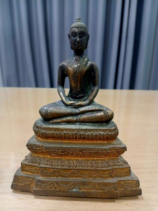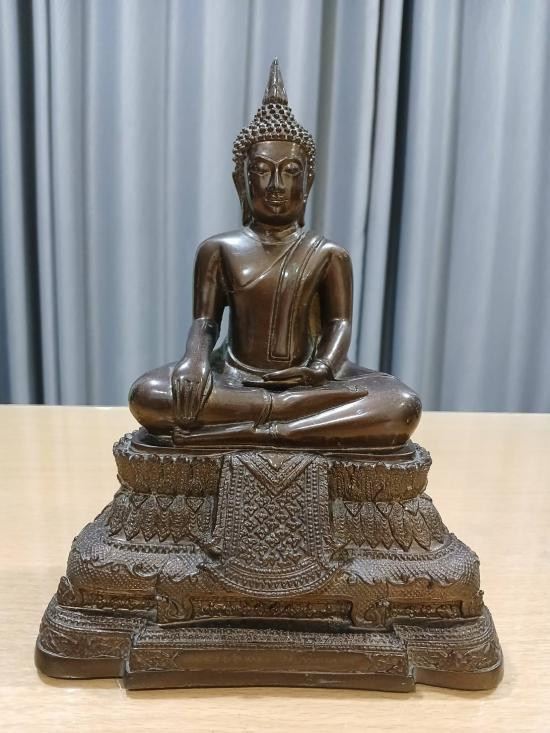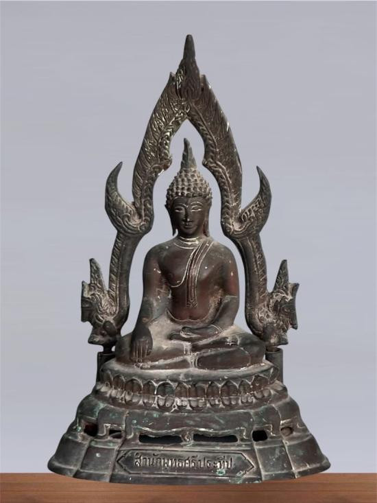 วัดใจ100แดง พระพุทธสิหิงค์หน้าตัก5นิ้วสูง11นิ้วปี2526ตามรูปจัดเนื้อโลหะวัดปางอโศก นครราชสีมา |