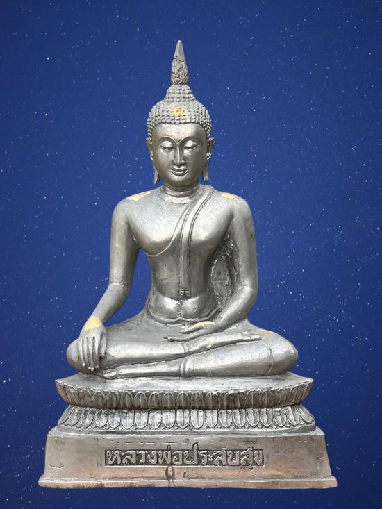 พระชื่อดีชื่อเป็นมงคล พระบูชาหลวงพ่อประสบสุข หน้าตัก 9นิ้วครึ่ง ฐาน 12 นิ้ว สูง 18 นิ้ว วัดโคกกระท้อน จ.สระบุ รี ปี๒๕๔๕ เนื้อเงินยวง พระค่อนข้างหนัก |
