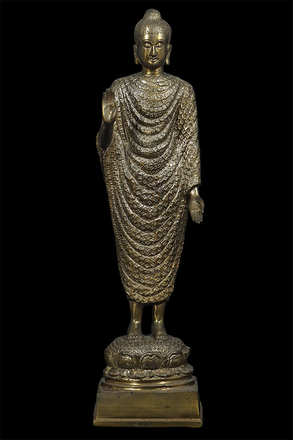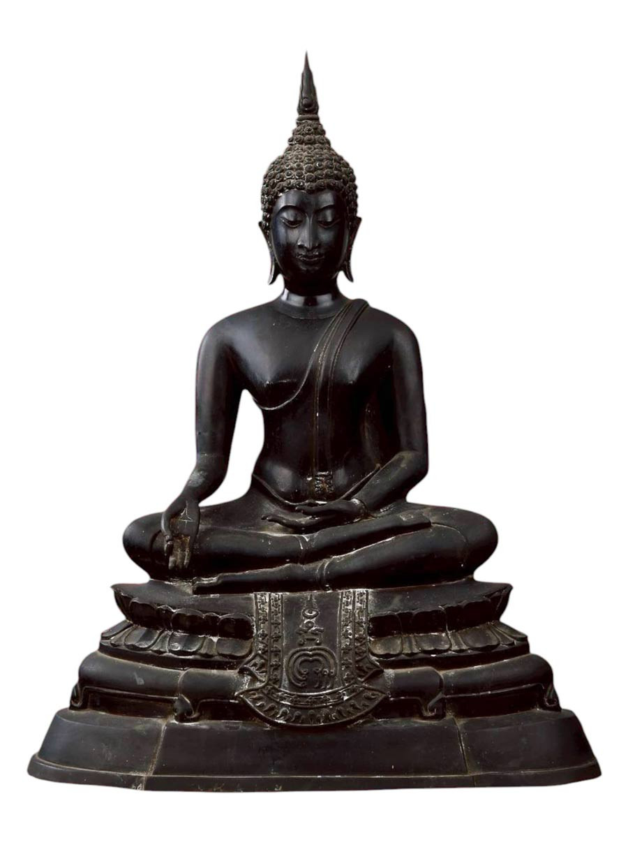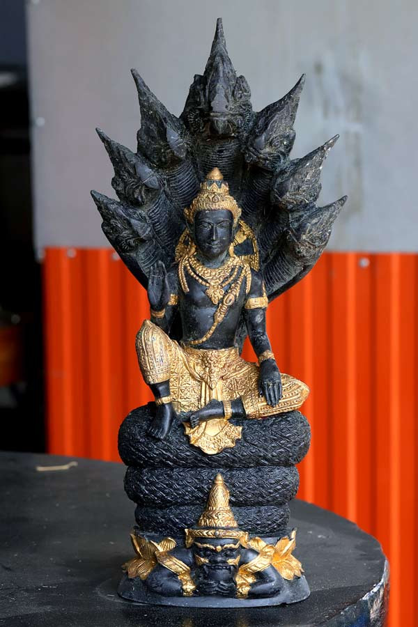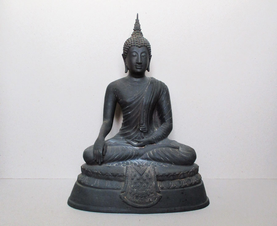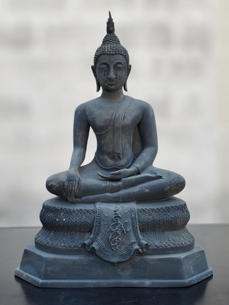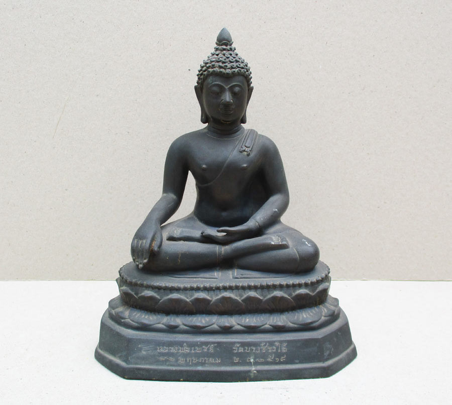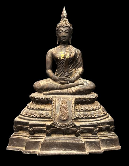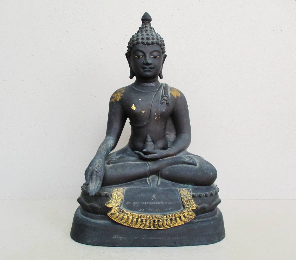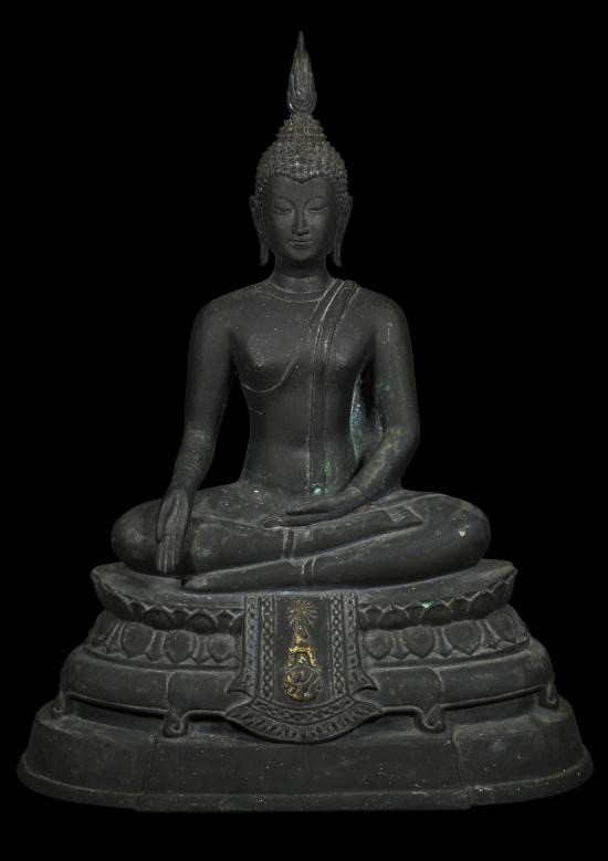 พระพุทธประทานพร หลวงพ่อแพ วัดพิกุลทอง จ.สิงห์บุรี พ.ศ.2512 หน้าตัก 9 นิ้ว เนื้อโลหะรมดำมันปูผิวหิ้ง หล่อดินไทยสีดำ พร้อมบัตรพระแท้การันตีพระ !! |