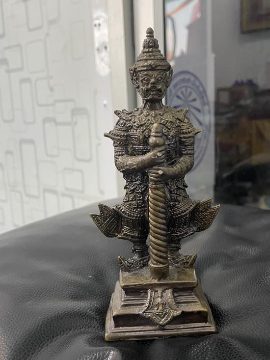 พระภูมิชัยมงคล องค์เทพเทวดาเทพารักษ์ ทรงยืนถือพระขรรค์ประทานทรัพย์ เก่าผิวหิ้งขนาดบูชาสูงประมาณ 7 นิ้ว**ขนาดฐานกว้างประมาณ 1.8 นิ้ว |