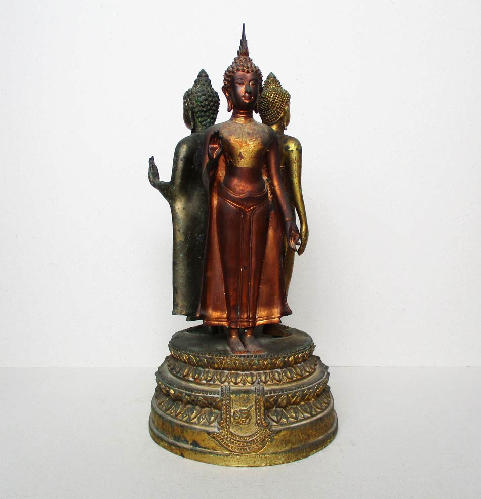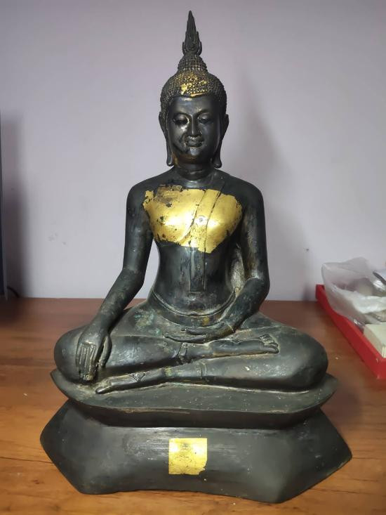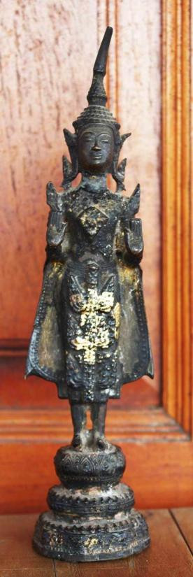 พระบูชาชุดเล็ก เนื้อตะกั่ว ลงรัก ปิดทองเดิมๆ ศิลปะรัตนโกสินทร์ตอนต้น อายุร่วมสองร้อยปี...ศิลป์งดงาม...บ้างก็เรียกกันว่าพระแก้บน...แต่ยังไงก็แล้วแต่ ความเก่า ศิลปะได้อายุยุครัตนโกสินทร์แน่นอนครับ.... |