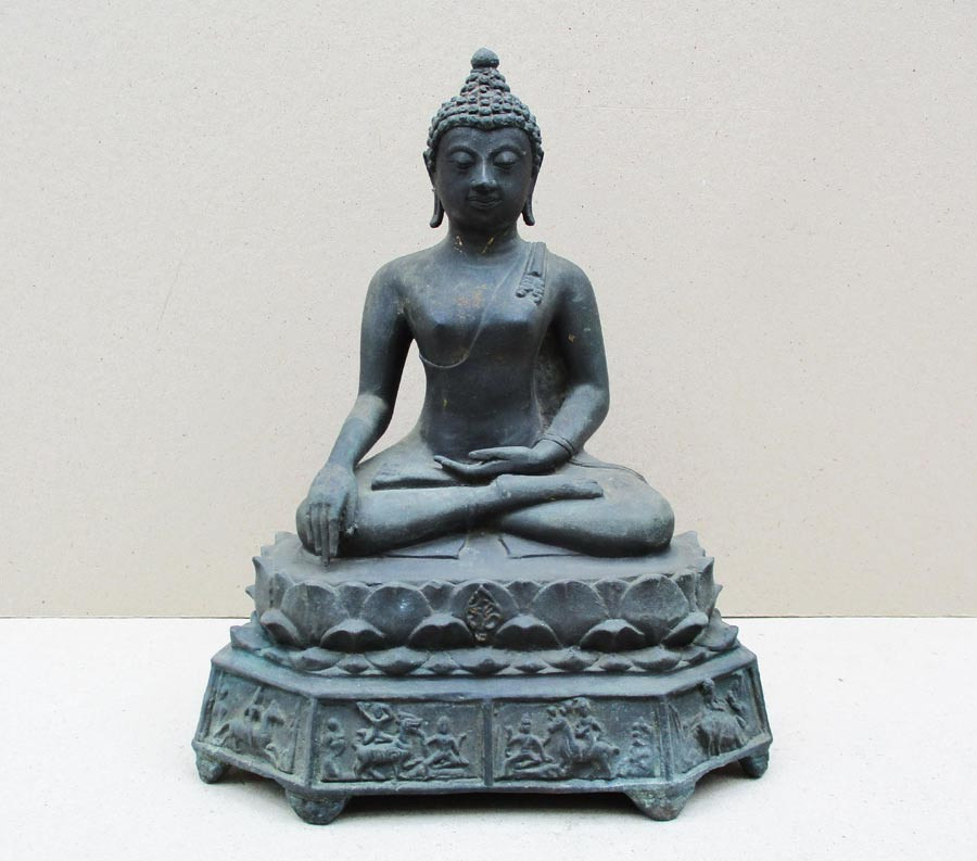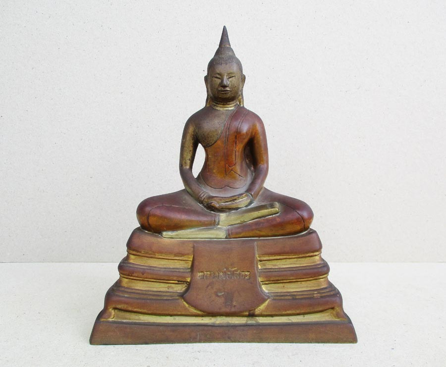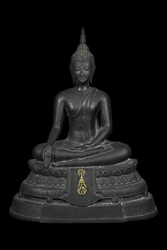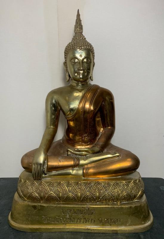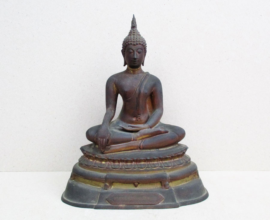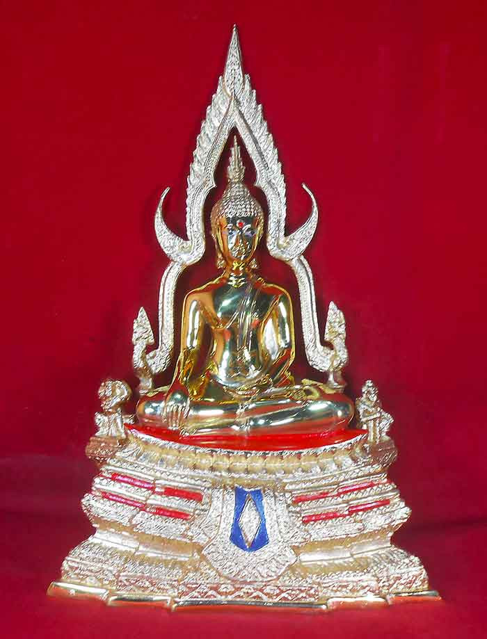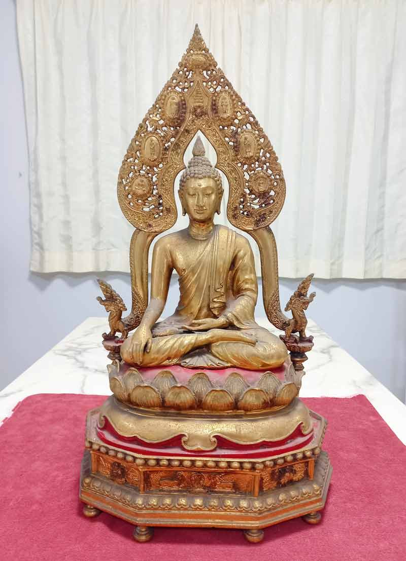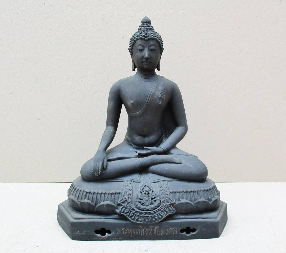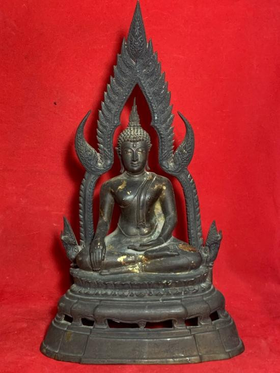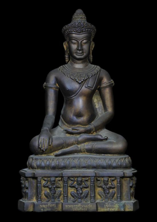 พระพุทธรูปฐานตราสัญลักษณ์ ภปร. ประจำมหาวิทยาลัยนเรศวร จ.พิษณุโลก ในวโรกาสพระบาทสมเด็จพระเจ้าอยู่หัว ภูมิพลอดุลยเดชฯ ครองราชครบ 50 ปี พ.ศ.2539 เนื้อโลหะรมมันปูผิวสวย หน้าตัก 9 นิ้ว ตอกโค๊ต หมายเลข !! |