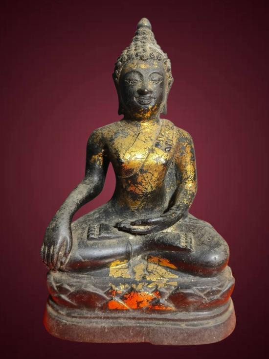 พระสัมพุทธภูธรินทร์ พระบูชารุ่นแรกของกรมตำรวจ ในหลวงรัชกาลที่ 9 เสด็จเททอง พ.ศ.2516 หน้าตัก 5 นิ้ว เนื้อโลหะรมมันปูผิวหิ้ง ดินไทยสีดำ-แดง ตอกโค๊ต ตอกเลข หายากครับ !! |