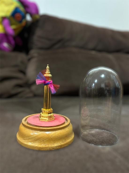 ครอบน้ำมนต์จตุคามรามเทพ รุ่น หลักเมืองพุทธาคมเขาอ้อ พ.ศ.2549 เนื้อทองเหลืองรมดำ มีฝาครอบ ปากกว้าง 7 นิ้ว สภาพสวยกริ๊บๆ !! |