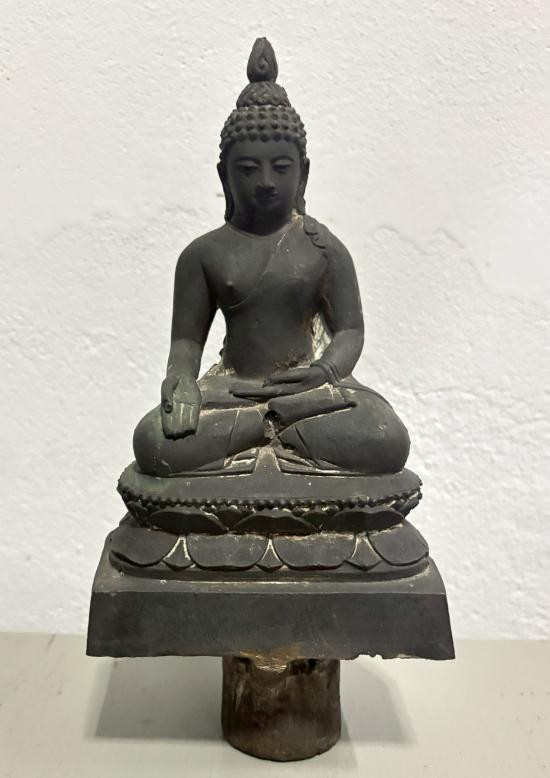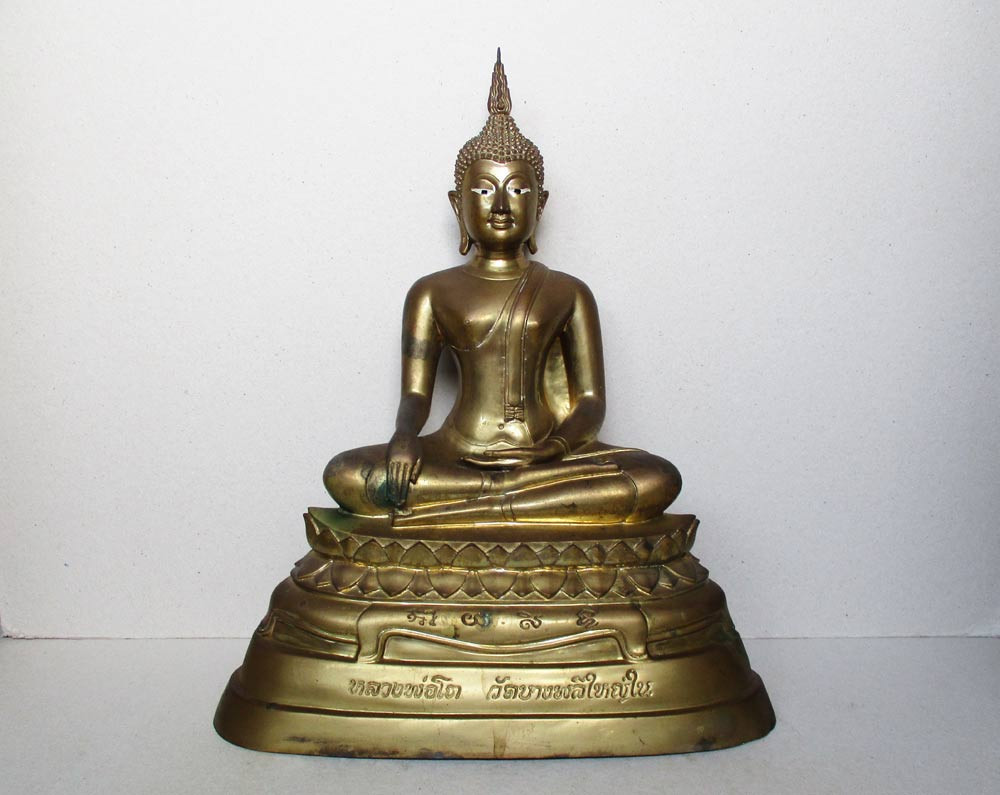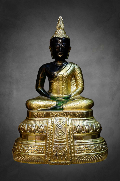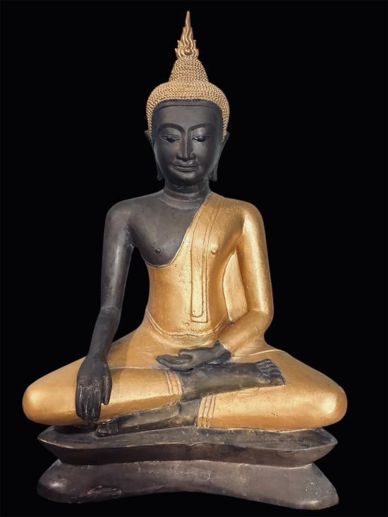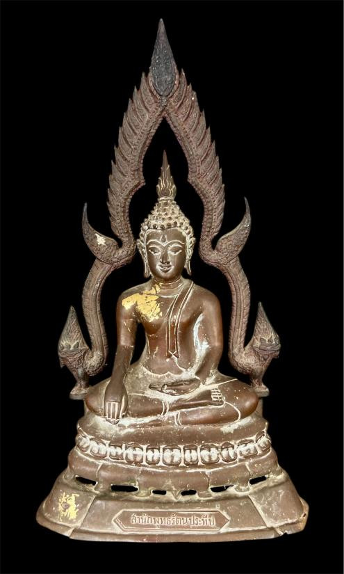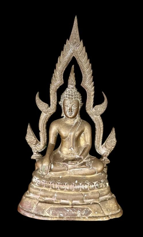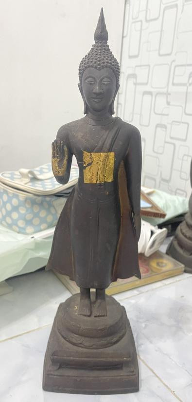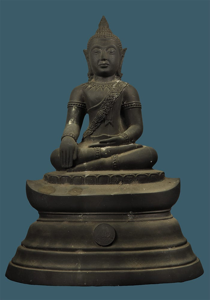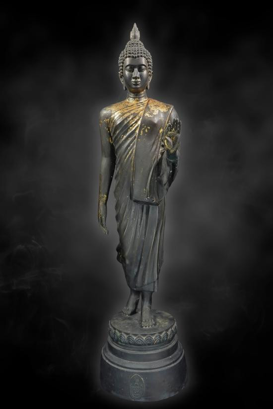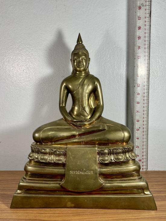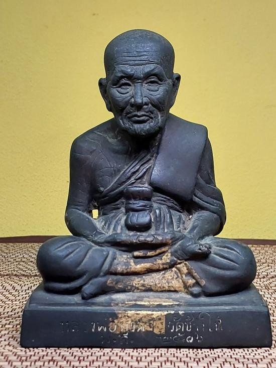 หลวงพ่อผาเงา วัดพระธาตุผาเงา จ.เชียงราย พ.ศ.2550 หน้าตัก 9 นิ้ว เนื้อโลหะรมดำมันปูผิวหิ้ง พุทธศิลป์งดงาม !! |