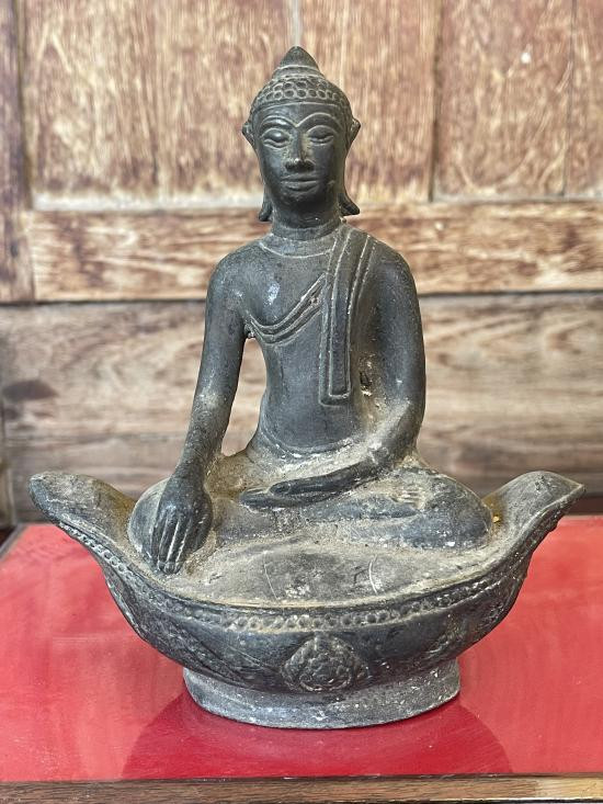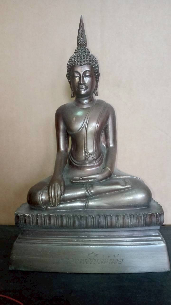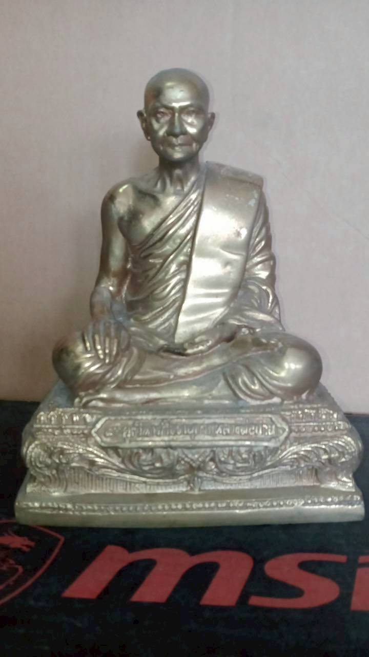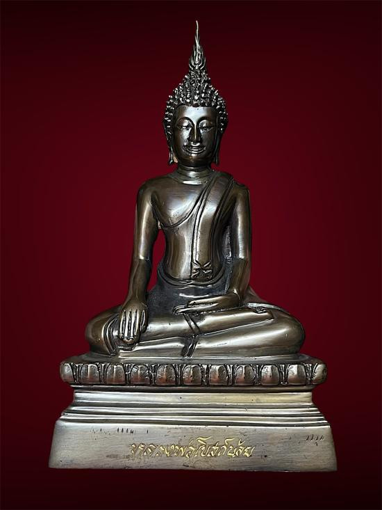 หลวงพ่อเงิน วัดบางคลาน จ.พิจิตร รุ่น ร่วมใจสร้างสะพาน วัดหิรัญญาราม พ.ศ.2528 หน้าตัก 9 นิ้ว ด้านข้างมีพัดยศคู่ เนื้อโลหะรมมันปู ผิวแห้งหิ้ง สภาพสวยสมบูรณ์ !! |