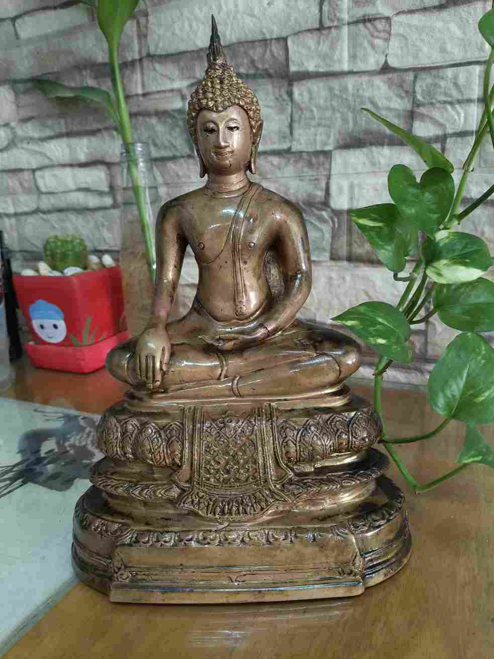 พระเพชรมหามงคล วัดแม่กาษา อ.แม่สอด จ.ตาก ขนาดบูชาหน้าตัก 5 นิ้ว สูง 9.5 นิ้ว เนื้อทองเหลืองเก่า |