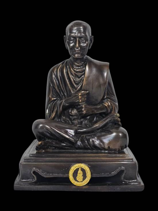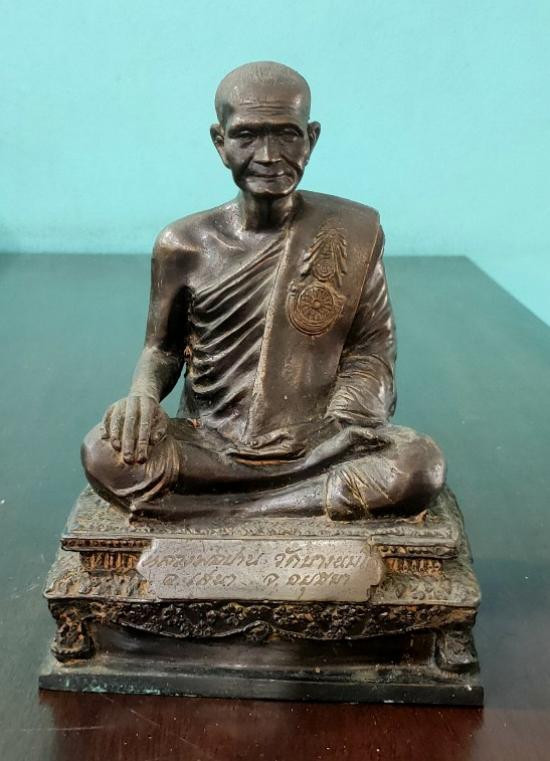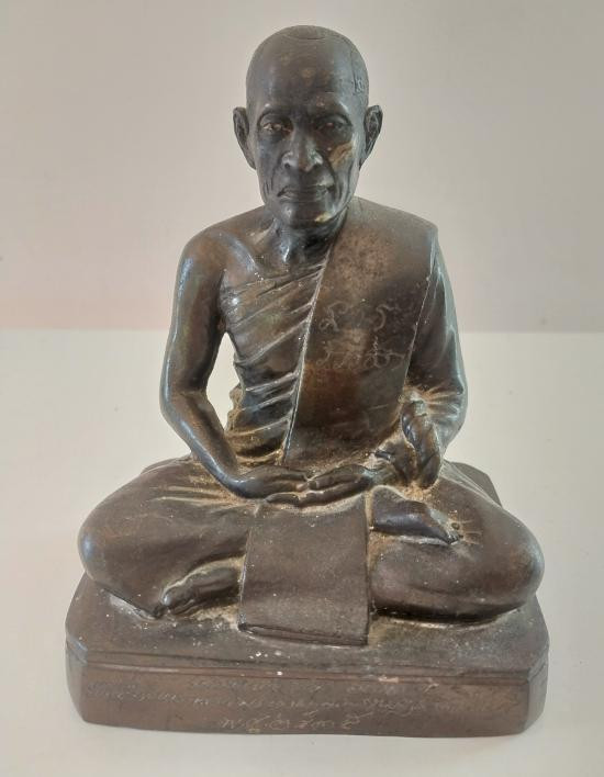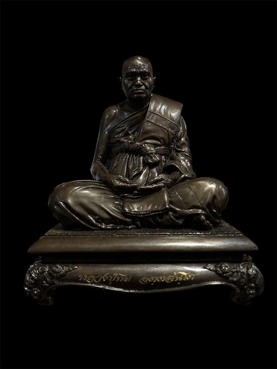พระบูชาหลวงปู่ไต้ฮงกง วัดหัวลำโพง กรุงเทพฯ รุ่นมหามงคล 3 แผ่นดิน พ.ศ.2539 หน้าตัก 5 นิ้ว เนื้อโลหะรมดำมันปูผิวแห้งหิ้ง !! |