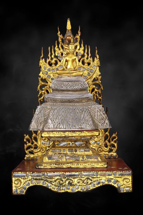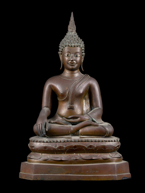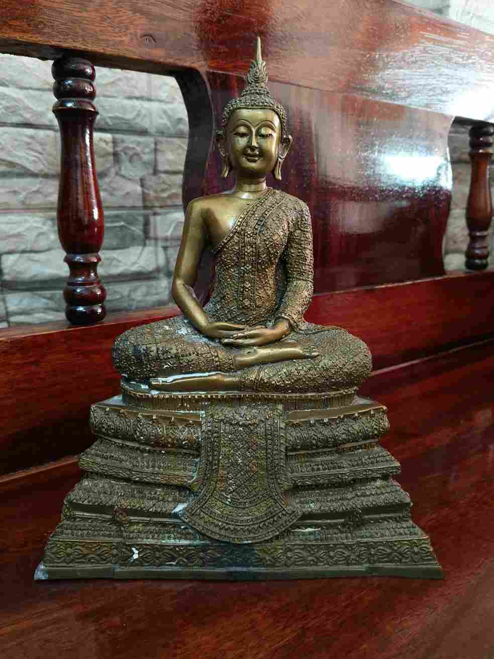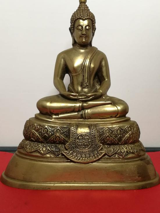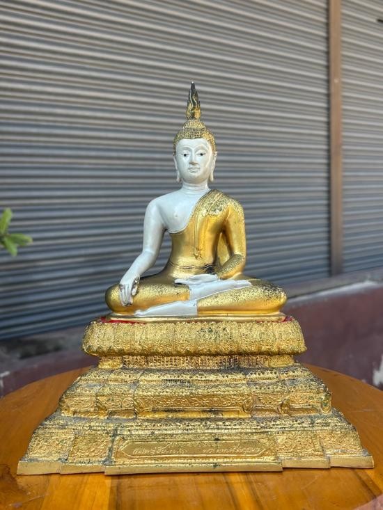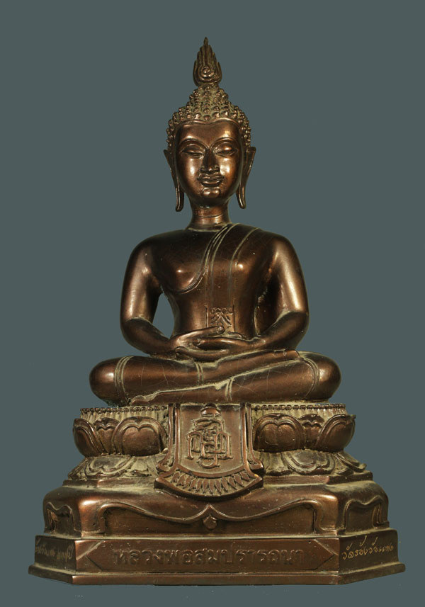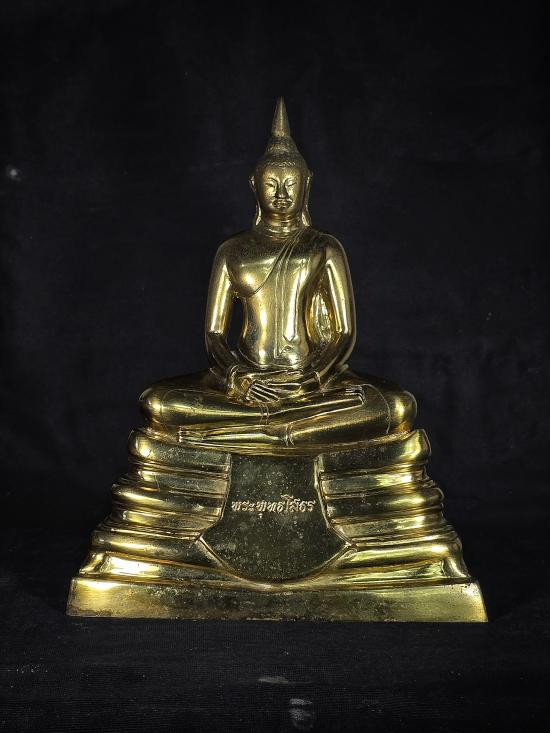 พระบูชาฐานตราสัญลักษณ์อักษรย่อ ว.ส.ก. หน้าตัก 9 นิ้ว ไม่ทราบวัด เนื้อโลหะรมมันปูผิวหิ้ง !! |