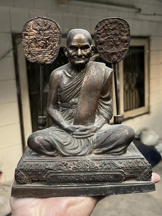 พระบูชาหลวงพ่อเงิน วัดบางคลาง พัดยศคู่ ออกวัดชิโนรส เสาร์5 ปี2536 เนื้อโลหะผสม หน้าตัก5นิ้ว ผิวหิ้งเดิมๆ มีเหรียญเงินขวัญถุงใต้ฐาน พิธีใหญ่เกจิร่วมเสกหลายท่าน |