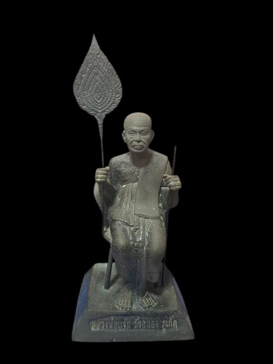 วัดใจ พระบูชา หลวงปู่ดำ วัดใหม่สันติ ปี 2558 รุ่น๑สร้างระฆัง หน้าตัก 5 นิ้ว เนื้อโลหะรมดำ ฐานปิดทองคำแท้ สวยงาม หมายเลข 791 |