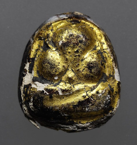 พระปิดตา หลวงพ่อปาน วัดเครือวัลย์ จ.ชลบุรี พิมพ์จัมโบ้หลังแบบ เนื้อผงลงรักปิดทอง ปี 2490-2517 สวยๆ พร้อมบัตร