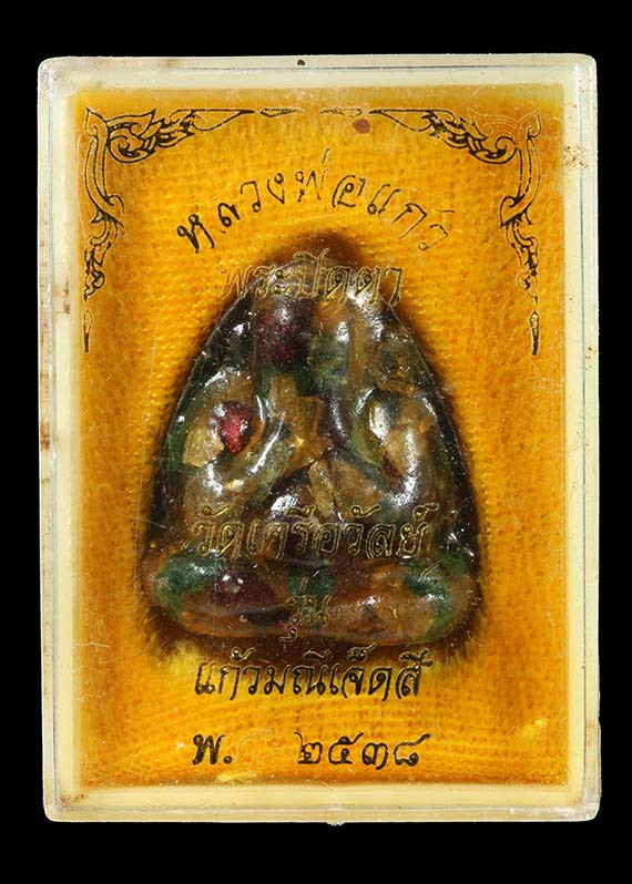 พระปิดตารุ่นแก้วมณีเจ็ดสี ปี 2538 หลวงพ่อแก้ว วัดเครือวัลย์ จ.ชลบุรีครับ |