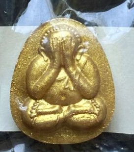 พระปิดตาเนื้อผงจุ่มรักปิดทอง หลวงปู่เหมือน วัดกำแพง จ.ชลบุรีครับ |
