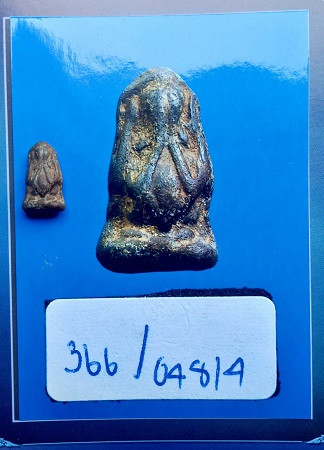 วัดใจ***พระปิดตาหลวงปู่ไข่ วัดเชิงเลน เนื้อผงใบลาน ปี 2507 ขนาดองค์กว้าง 1.4 cm. สูง 2.3 cm. |
