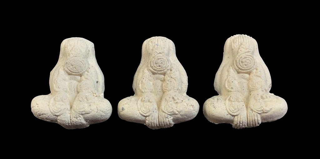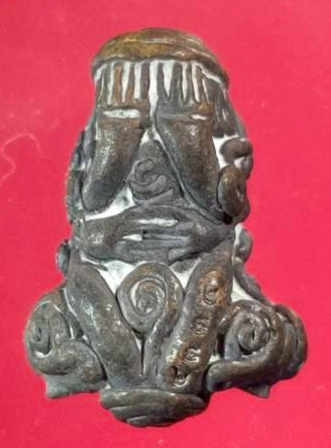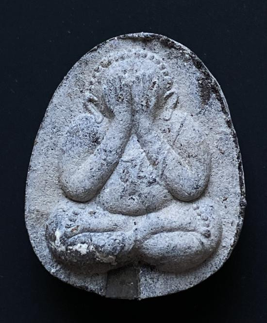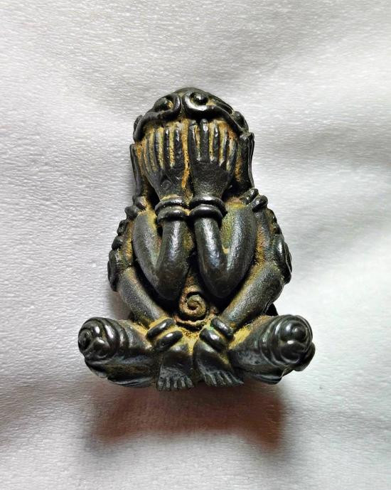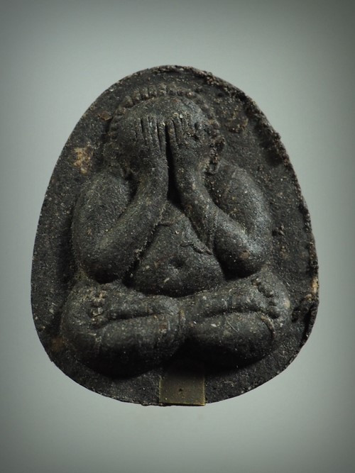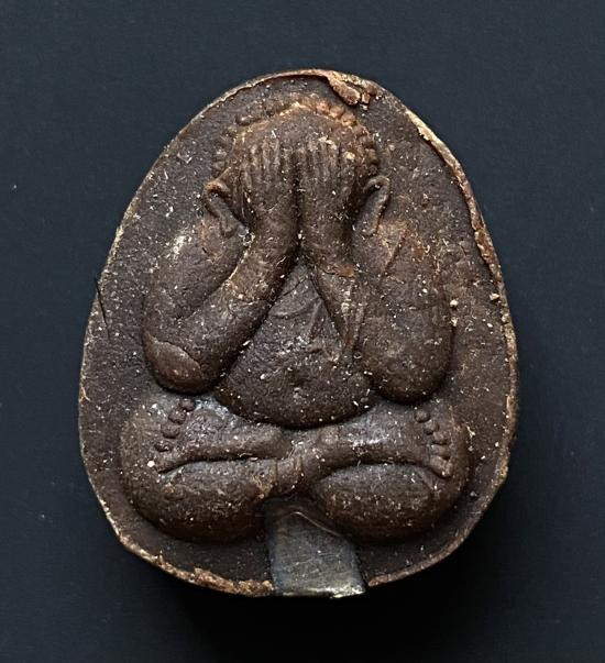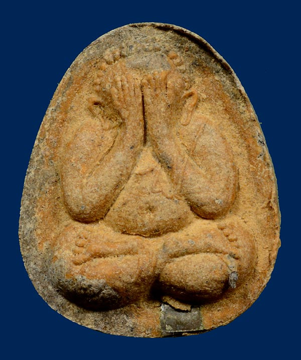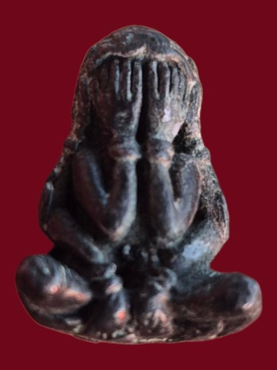 พระปิดตามือไขว้มหาอุตต์ วัดปากสระ จ.พัทลุง เนื้อชนวนโลหะเก่า |