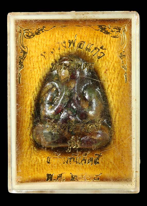 วัดใจ พระปิดตา สุริยันมหาลาภ หลวงปู่เจือ วัดกลางบางแก้ว จ.นครปฐม ปี 2545 เลี่ยมพลาสติก สวยงาม |
