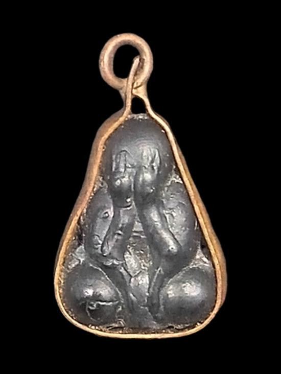 พระปิดตายันต์ดวงเล็ก ปี2523 สมเด็จพระญาณสังวร (เจริญ) วัดบวรนิเวศ_(เนื้อผงใบลานดำปลดหนี้)_มีเส้นเกศา_ |