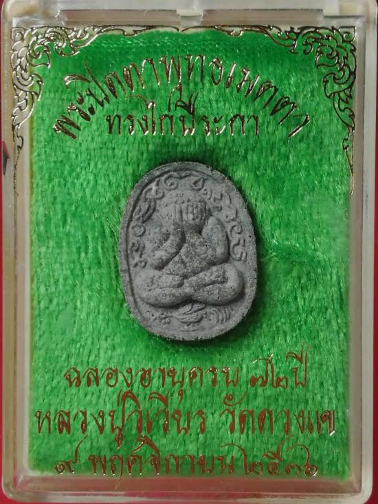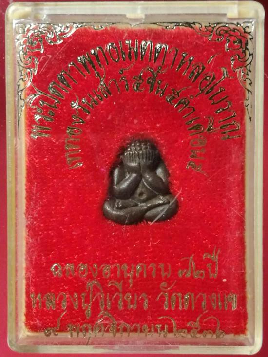 พระปิดตาพุทธเมตตา ทรงไก่ปีระกา เนื้อผงพุทธคุณ หลวงปู่วิเวียร วัดดวงแข ปี ๒๕๓๖ พร้อมกล่อง |