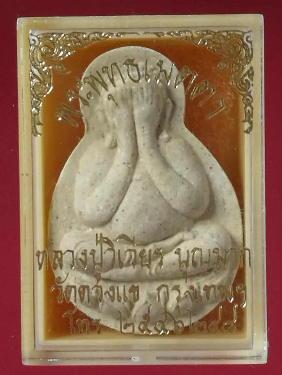 พระปิดตาพุทธเมตตา ทรงไก่ปีระกา เนื้อใบลาน หลวงปู่วิเวียร วัดดวงแข ปี ๒๕๓๖ พร้อมกล่อง |