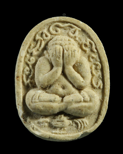 พระปิดตาหลังพระสังกัจจายน์ วัดป่า ชลบุรี เนื้อผงพุทธคุณครับ |