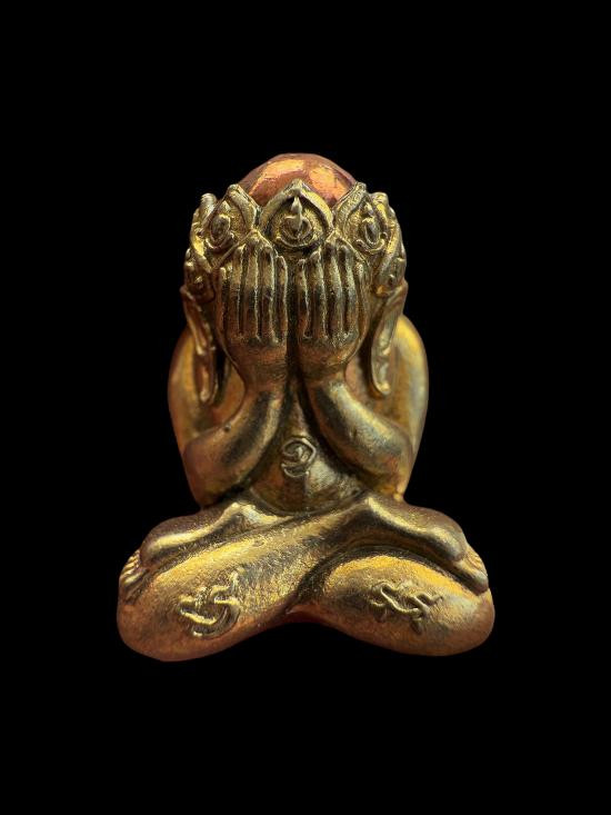 พระปิดตา 7 รอบ 84 พรรษา เนื้อโลหะชุบสามกษัตริย์ สมเด็จพระาณสังวร สมเด็จพระสังฆราช วัดบวรนิเวศวิหาร พร้อมเลี่ยมยกซุ้มสิงห์ชุบทอง+กล่องเดิม |