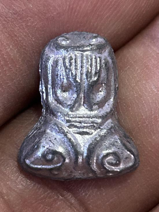 .พระปิดตา เนื้อตะกั่ว พิมพ์ครึ่งซีก หลังมีรอยจาร ไม่ทราบที่ครับ พระบ้านเหมามาลงขายครับ |