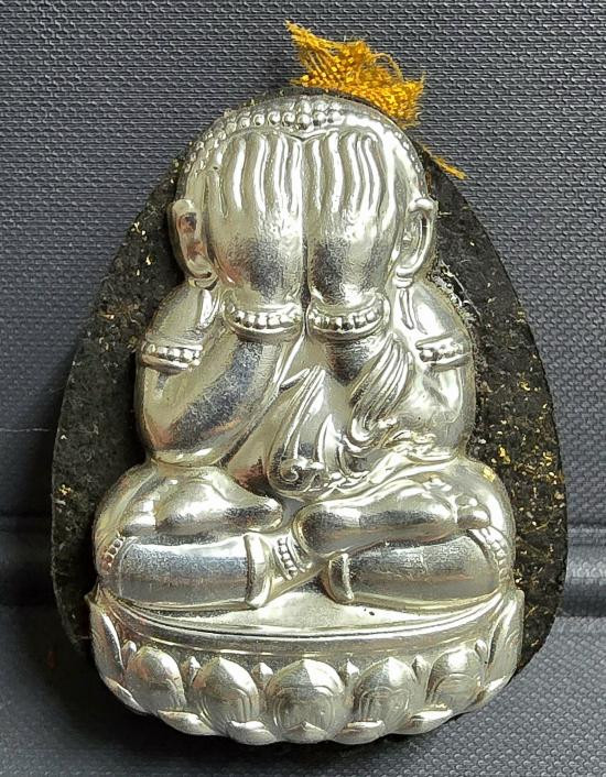 พระปิดตาจินดามณี"หนุมานพันล้าน" หลวงปู่มหาศิลา สิริจันโท (ออกวัดแจ้งใน เสกวาระแรกที่ธรรมอุทยานพร้อมเหรียญพหุรมานของแม่ทัพภาค2) เนื้อดำใบลาน หน้ากากเงินแท้ คลุกจีวรหลวงปู่ (รายการนี้เป็นรายการหลักที่ |
