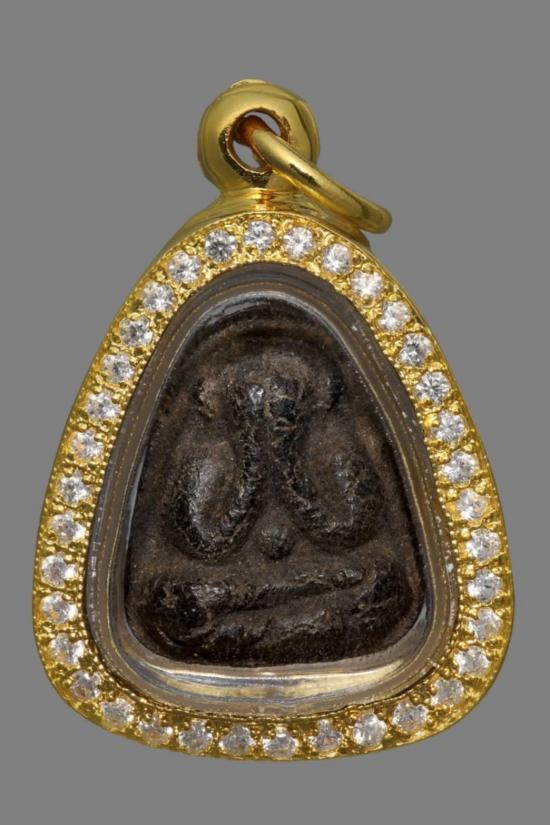 วัดใจ หลวงปู่เฮี้ยง วัดป่า จ.ชลบุรี พิมพ์ซุ้มเถาวัลย์ เนื้อผงคลุกรัก |