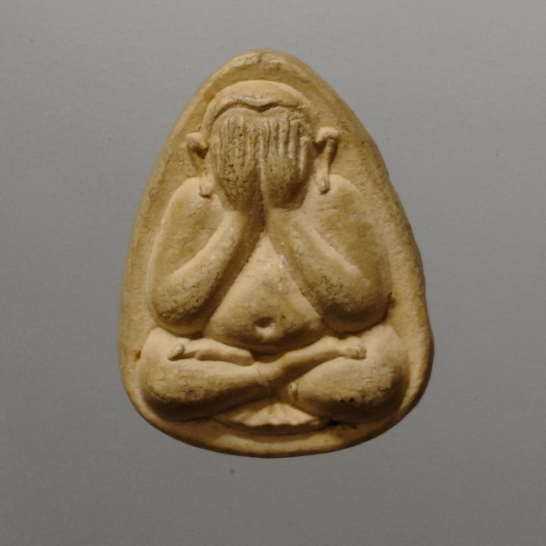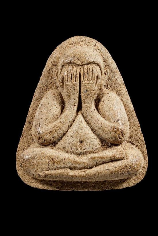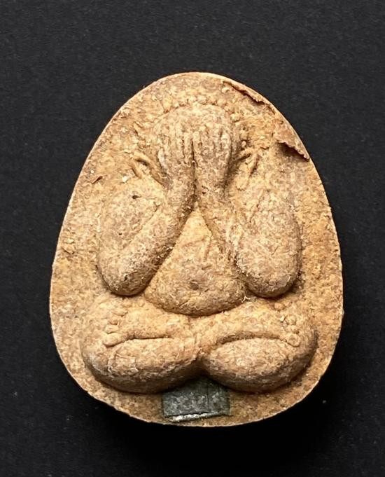 พระปิดตา เนื้อดิน หลวงปู่ทอง วัดราชโยธา กรุงเทพฯ พิมพ์กลีบบัวยันต์รอบ ปี 2470 |