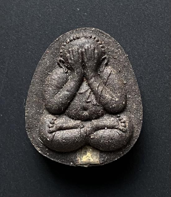 พระปิดตาหลวงพ่อปาน วัดเครือวัลย์ พิมพ์หน้าโด่หลังแบบเนื้อผงคลุกรักจุ่มรักปิดทองเดิม สวยๆ |