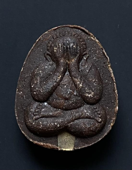 พระปิดตาเก่าเนื้อในสีเทาลงนักหนาๆรักแตกลายพระเก่าครัย |