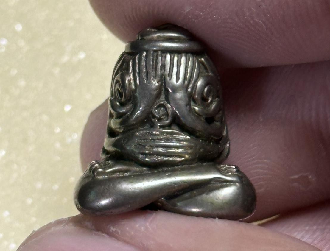 พระปิดตา เนื้อทองเหลือง เลี่ยมกันน้ำใหม่ เพราะอันเดิมแตกมองไม่ออกว่าอะไร ไม่ทราบเกจิไม่ทราบที่ |