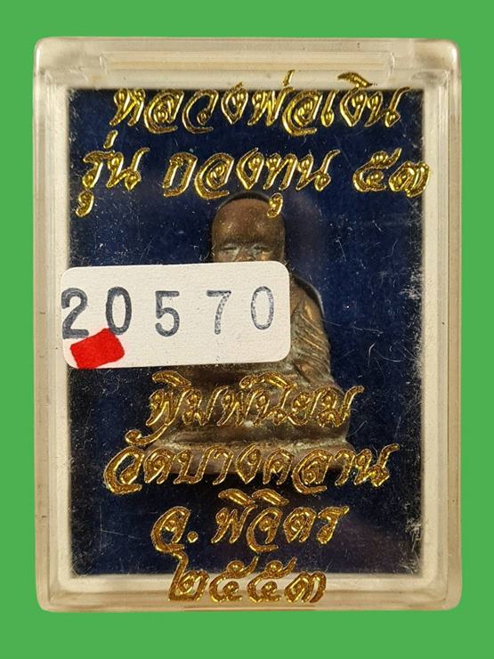 (หมายเลข20570) หลวงพ่อเงินวัดบางคลาน รูปหล่อพิมพ์นิยม รุ่นกองทุน 53 เนื้อสำริดแดง (ผิวไฟดินไทย) ใต้ฐานตอกโค๊ต (ยังมีดินเบ้าเดิมติดอยู่ สวยมาก พร้อมกล่องเดิม) |