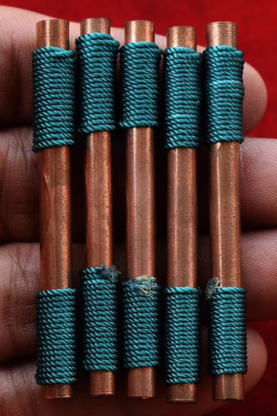 ชุด 5 ดอก...ตะกรุดประสานใจ (หญิงร่ำไห้ ชายร่ำหา) ปี 2558 หลวงปู่บัว วัดดอนขวาง จ.นครราชสีมา พร้อมซองรูปเดิมจากวัด สภาพพระตามรูปที่ลงทุกประการ (ขนาดยาว 2.5 นิ้ว)
